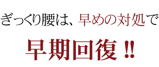ぎっくり腰は、適切な処置をおこなえば早期に回復さすことが出来ます。