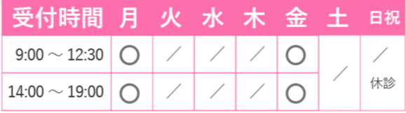 院長が入っているときは、渡部・山内も施術します。女性の先生(山内)ご希望の方は、月曜日と金曜日限定ですので、早めの予約がオススメです。