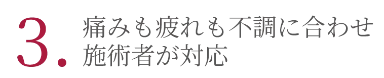 肩こり・腰痛などの痛み、寝ても抜けない疲れや重だるさなど、状態に合わせて対応します。