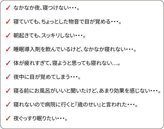 夜寝れないのは、本当に辛いです。1日の疲れを取るには、睡眠が一番大事です。