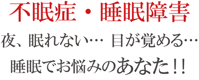 寝付きが悪い、夜なかなか寝れない方は、ぜひ不眠症整体をお試し下さい。